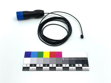 These sensors allow us to have smaller tips (about 2 mm in diameter by 5 mm in length). They are connected to same flexible cable (1.4 mm in diameter). Unike the CNY70s, these sensors are RHoS compliant. If handled cautiously, each sensor can be glued to an animal, detached and reused multiple times. Cables have 2 m in length. The connection on the side of the PULSE is IP67 rated.